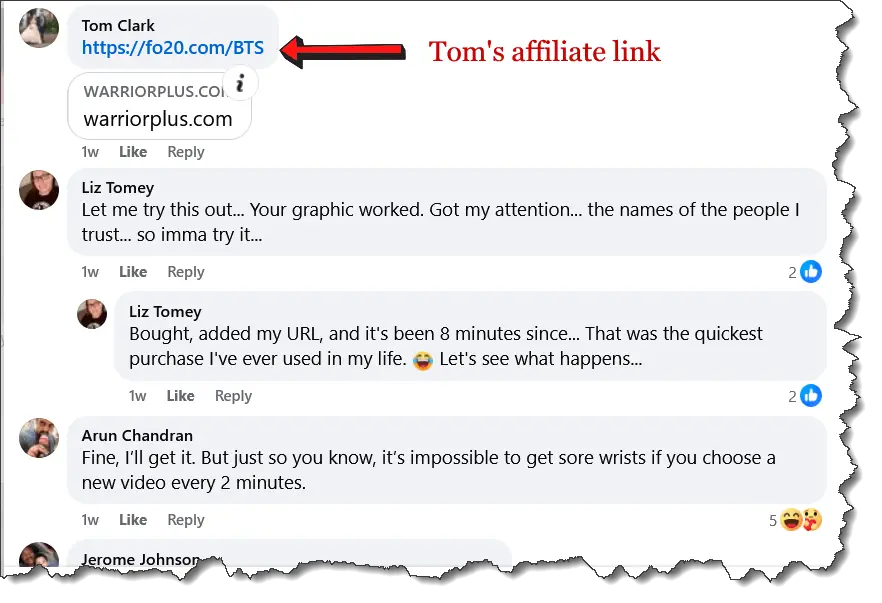 So I know for a fact that Tom made at least three sales just from that one Facebook post. Seriously, it’s that easy.