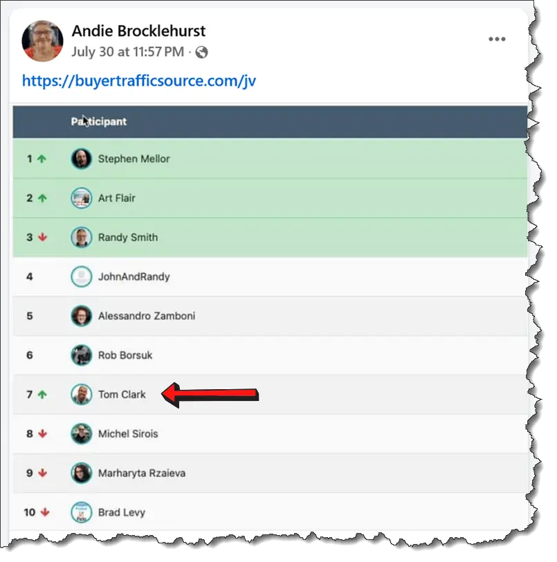 Today, while scrolling Facebook, I saw Andie Brocklehurst post a screenshot of the affiliate leaderboard.